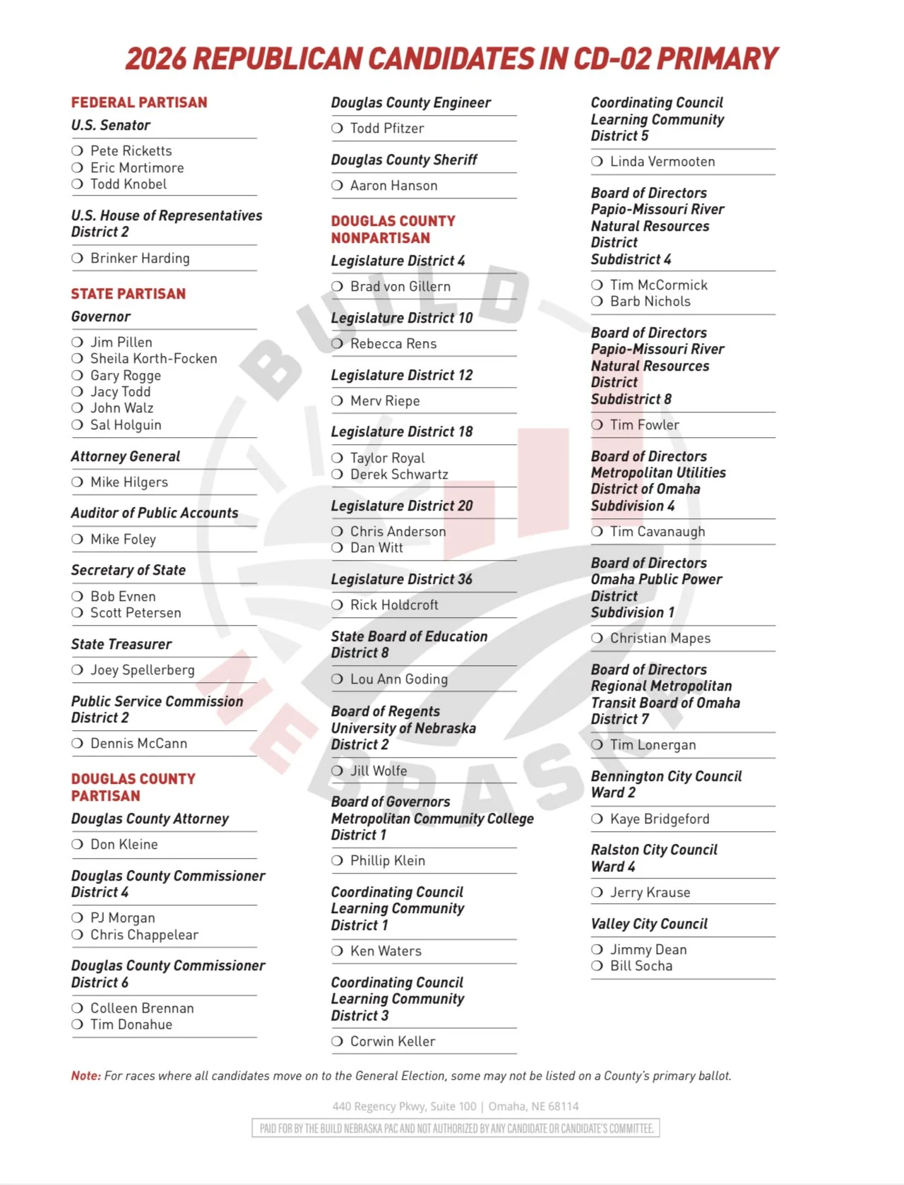 Build Nebraska has done the work to identify and support strong, principled Republican candidates across Nebraska’s Second Congressional District.